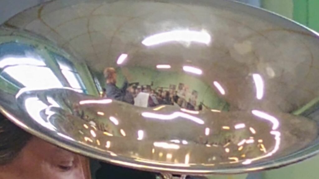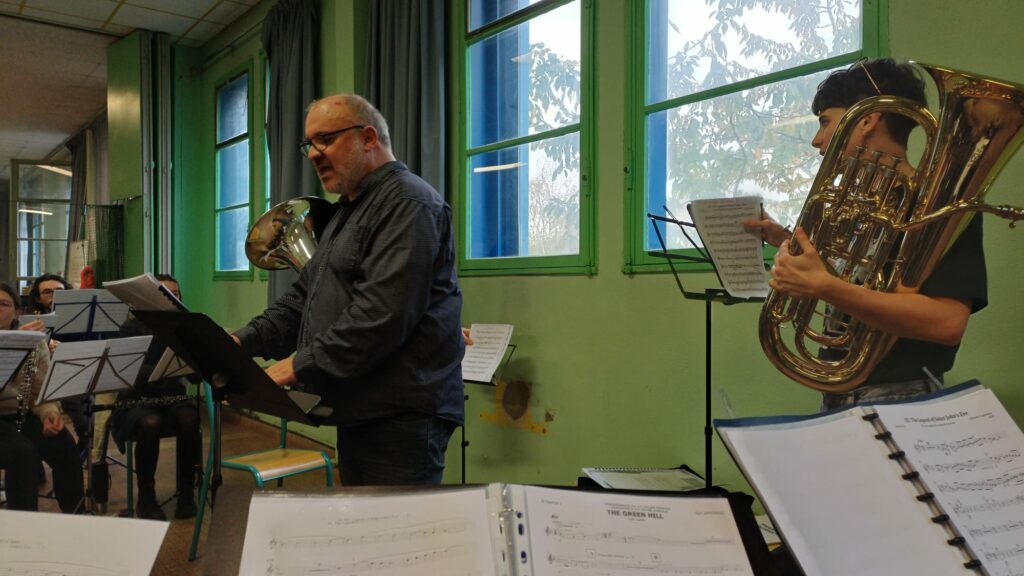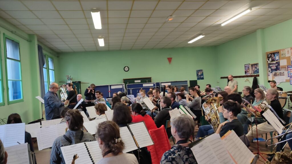 Dès 9h, tous les musiciens étaient en place devant notre chef pour travailler « Impression de Loire » et « Thames Journey » avant d’être rejoints par les solistes tubistes et euphonistes du conservatoire pour jouer “Green Hill” et « World of Dream » et découvrir « Baritone Boogie » que nous allons jouer avec l’ensemble d’euphoniums du conservatoire.