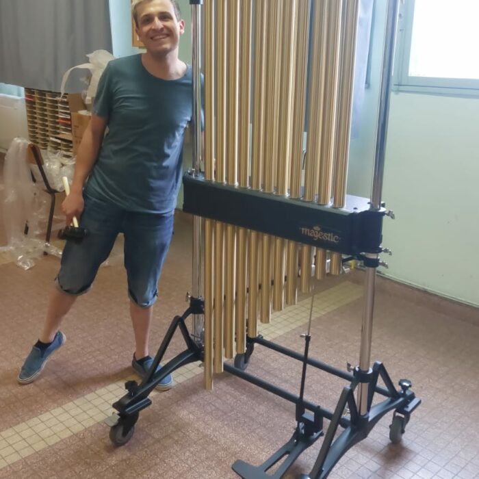 Et ce mercredi, nous avons accueilli de nouvelles venues d’un genre particulier …. dans le pupitre des percussions …. il s’agit des cloches tubulaires dont nous avons fait l’acquisition pour le plus grand bonheur de Bertrand notre percussionniste ! Regardez la vidéo ci-dessous et vous vous rendrez compte de son plaisir à faire retentir ces tubes qui sonnent comme de véritables cloches d’église.